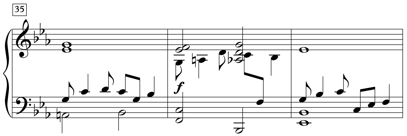 35–37: I have moved some of the notes in the middle line between the staves to reflect a more comfortable hand distribution for most pianists. The lines are my addition. Here is Price’s original distribution: