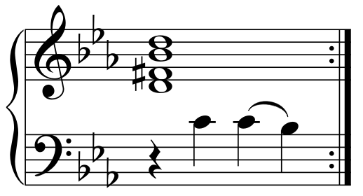4: RH: The placement of the curved line is ambiguous: it could be a slur from C to B flat or a tie between the E flats.